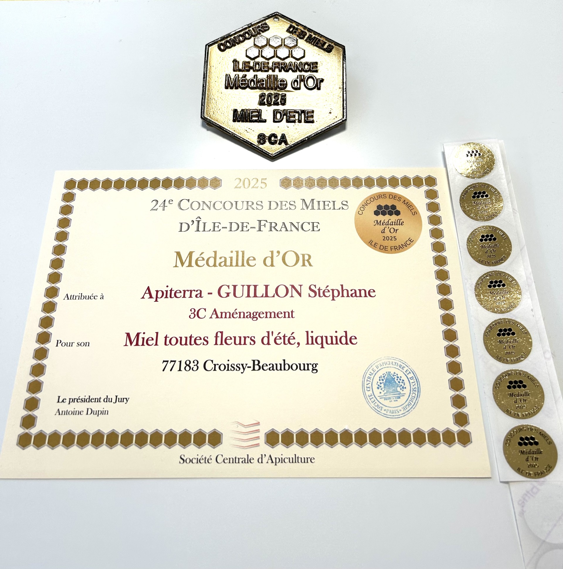 Nous sommes très fiers d’annoncer que notre miel, récolté avec notre partenaire de longue date Apiterra, a remporté la médaille d’or au concours des miels d’Île-de-France, catégorie été, miel liquide. Oui, rien que ça 🥇