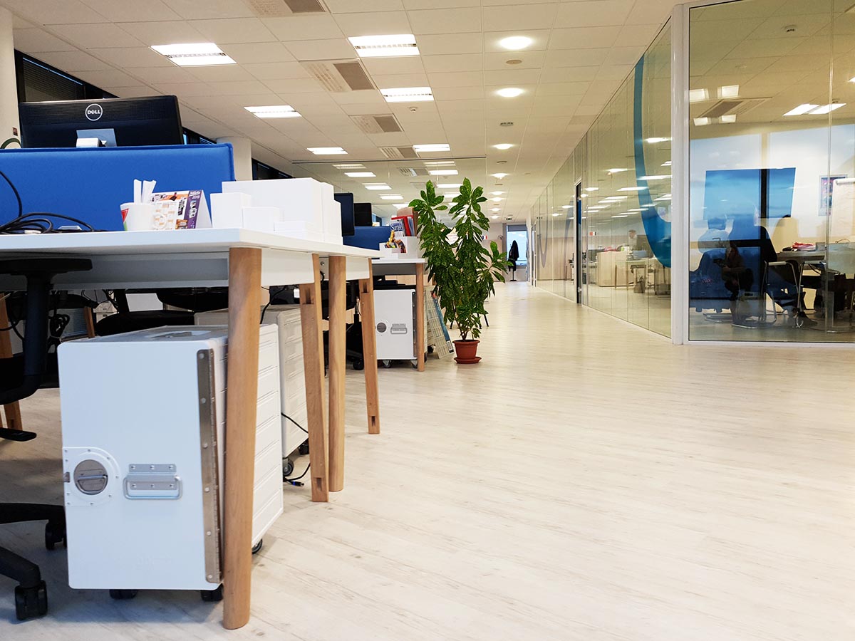 Cloisonnement / Plomberie / Revêtement de sol / Peinture / Mobilier de bureaux et sur-mesure / Câblage courant fort et faible / Faux plafond / Agencement acoustique et décoratif / Multimédia